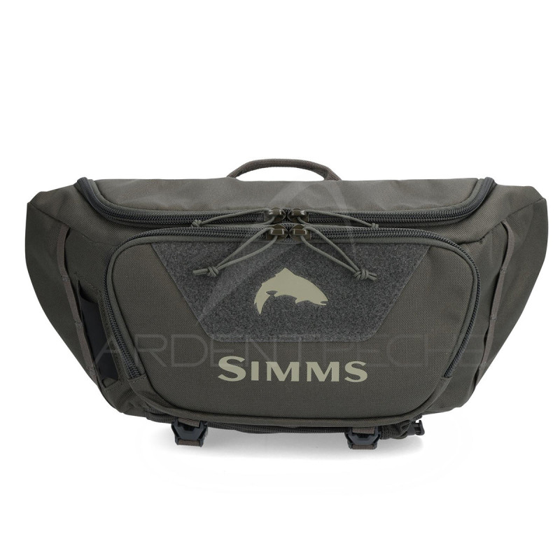 Tissu en polyester recyclé 600 deniers avec revêtement en polyuréthane robuste et fiable.Compartiment principal zippé + poche interne en filet extensible zippé.Poche supplémentaire zippée pour accessoires sur le devant.Supports de patch pour le mouches à l'extérieur et à l'intérieur de la poche extèrieure.Porte outils latéral en hypalon intégrée.Un compartiment réglable par sangles, situé sous le hip pack, permet de porter un bidon La ceinture réglable permet de porter le sac en mode lombaire ou sur l'épaule en mode "bandoulière".TECHNOLOGIE de fabrication :