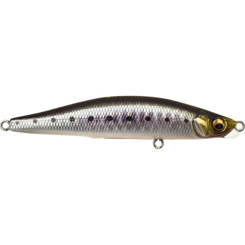 Le Genma 85 S est un stickbait coulant conçu pour tenir sa nage dans les conditions les plus difficiles : dérives du bateau, courant et clapot ! On apprécie énormément sa capacité à conserver sa nage lors des accélérations. Cette grande stabilité est due à la présence d'une courte bavette en position verticale sous la tête du leurre.