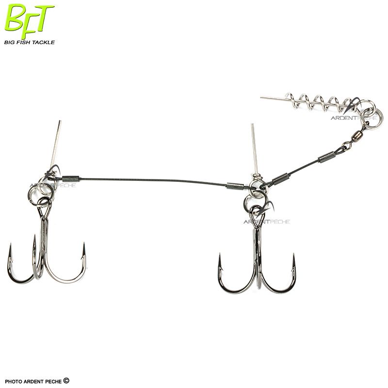 Montage prêt à l'emploi pour équiper un leurre souple de 18 à 26cm. Hameçon de taille 2/0 ou 1 et tresse titane. Idéal pour armer le Pig Shad ou le Pig Shad Junior.