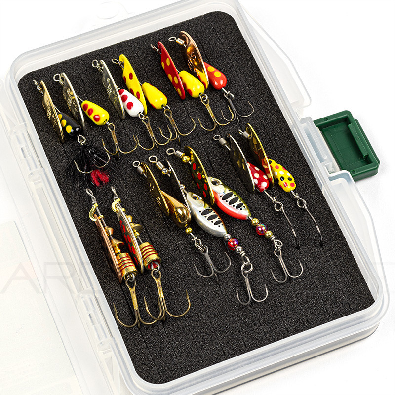 Maxi pack de cuillers tournantes pour la pêche de la truite. Les meilleurs modèles et les meilleures marques : Panther Martin, Duo, Sico lure, Smith et Mepps. Le kit est composé de 5 Panther martin en taille 4, 1 Ryuki spinner en 3.5g et 1 en 5g, 2 cuillers Sico lure en 5.5g, 1 AR S en 3.5g et 1 en 6g et enfin de 2 Mepps en taille 1 et 2. Nous avons sélectionné une multitude de teintes et de tailles différentes pour couvrir une multitude de situations, eaux teintées, eaux claires, soleil, temps couvert, petites rivières, moyennes rivières...Le tout est livré dans une boite Meiho CS F9 que vous n'avez qu'à glisser dans votre poche ou votre sac pour partir à la pêche.