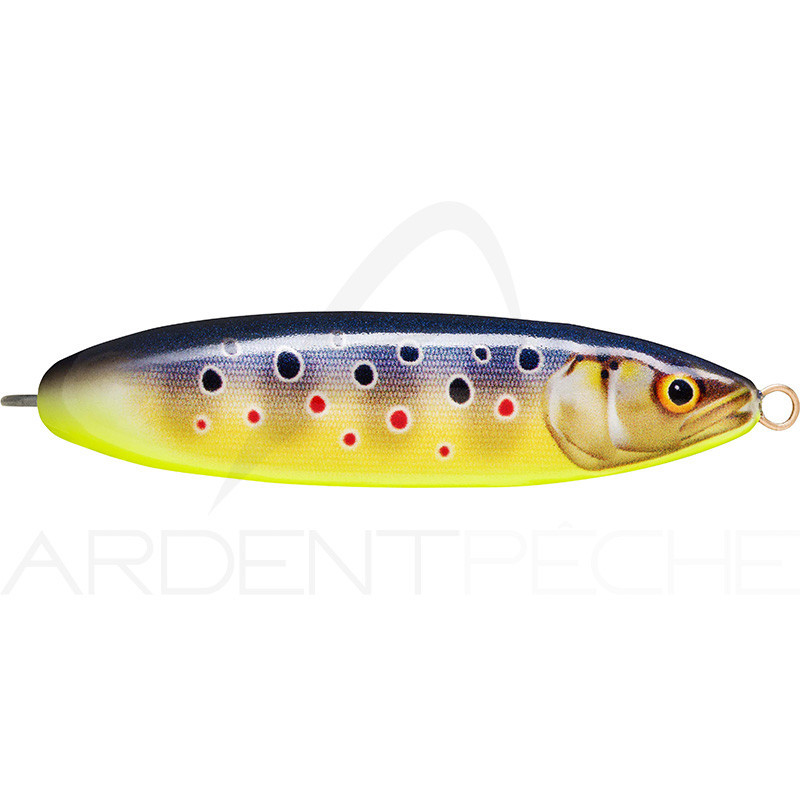 Le Rapala Weedless Minnow Spoon a dominé les ventes en Finlande pendant des années. Son palmarès est impressionnant, notamment pour la capture de brochets à travers la Scandinavie et la Russie. Doté dun hameçon simple renforcé avec système anti-herbe, il excelle pour explorer les zones denses et encombrées.